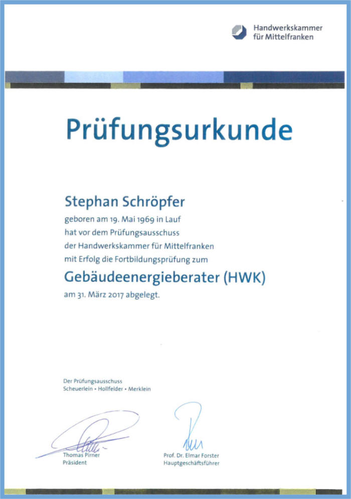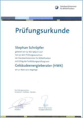 Energieberatung (HWK) Stephan Schröpfer seit 1.7.2017